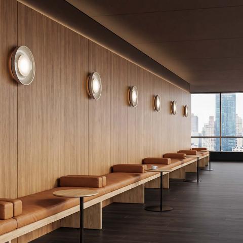 Designers can select surface mount, stem mount, or suspended configurations. The suspended option allows two or three shades of the same finish to be stacked for a striking visual effect.