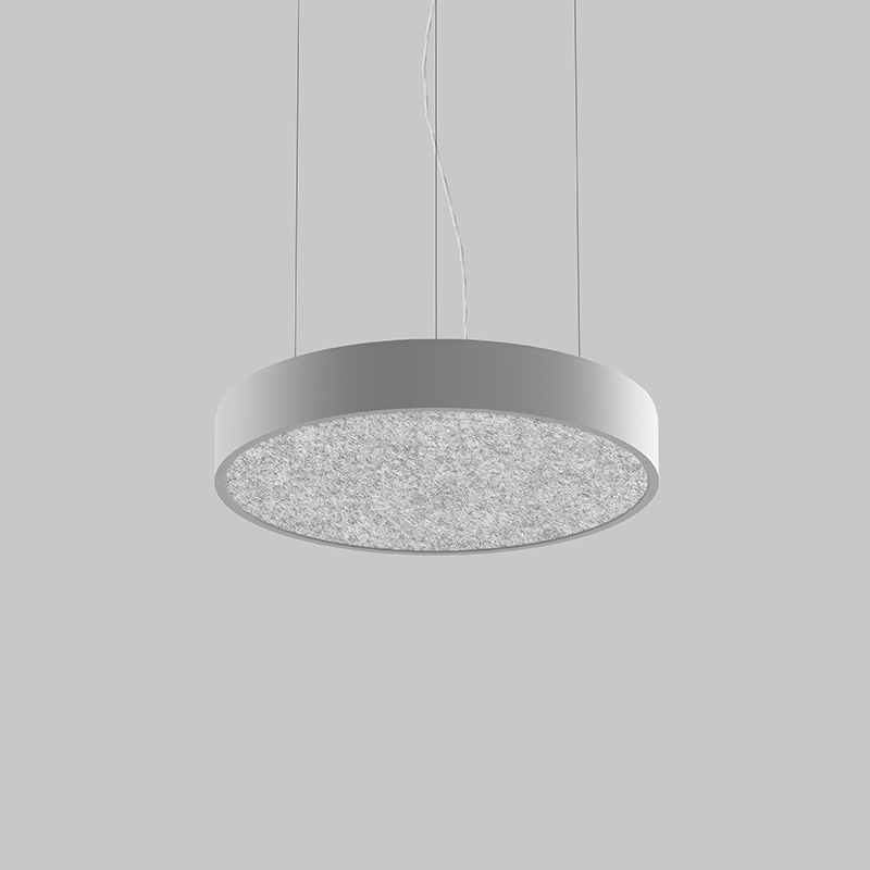 Large format, sound absorbing round direct pendants in 24" and 36" with optional uplight modules.