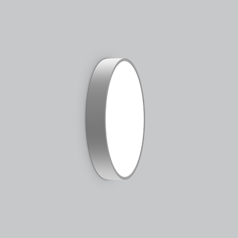 Luminaire rond, élégant et fonctionnel disponible en grands formats de 24” et 36” avec éclairage direct. Version surface. Conforme à la norme ADA