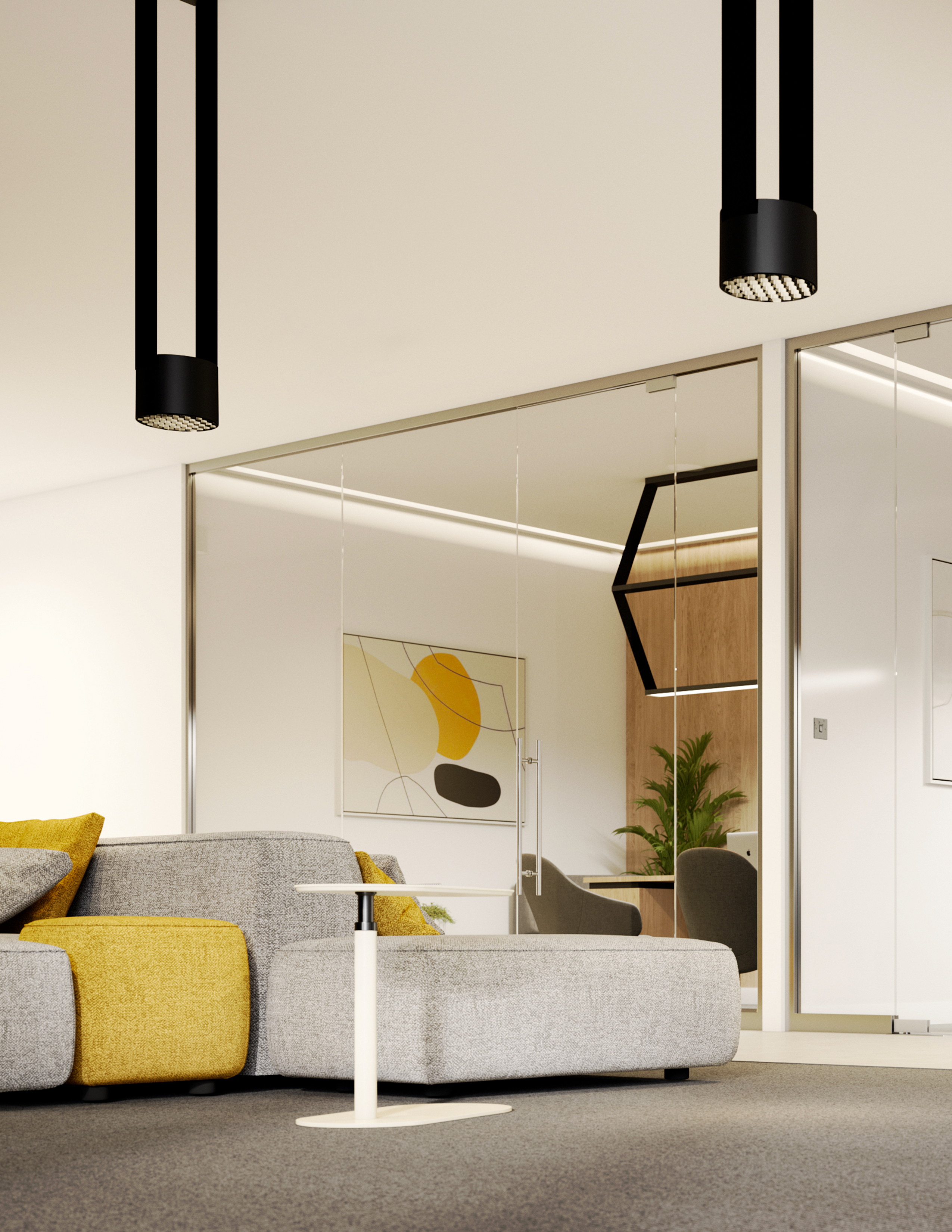 Créez des designs audacieux avec Tangram-Essential. Définissez l'espace avec des lignes géométriques astucieusement suspendues aux angles que vous choisissez, le tout parfaitement connecté, avec des sangles coulant dans les luminaires comme un en un seul. Choisissez entre le magnifique déflecteur en nid d'abeille en métal imprimé en 3D qui élimine l’éblouissement ou le diffuseur prismatique offrant une lumière diffuse luxuriante tout en faisant écho à la texture de la sangle.